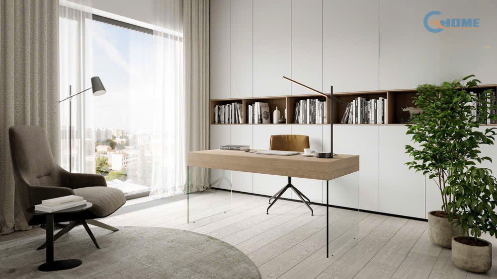 Bàn làm việc là thứ không thể thiếu trong một phòng ngủ đầy đủ, tiện nghi. Có thể lấy đó làm khu vực đọc sách, thư giãn sau ngày dài làm việc.