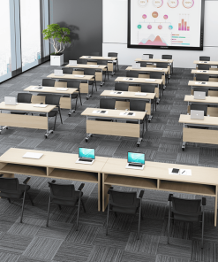 - Phụ kiện: Yếm bàn bằng gỗ công nghiệp MDF phủ melamine, 4 bánh xe nhựa di chuyển phía dưới khung bàn.