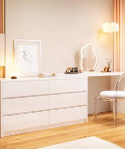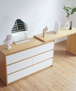 Một trong những điểm nổi bật của BTĐ01 chính là hệ thống lưu trữ thông minh với sáu ngăn tủ kéo được tối ưu hóa. Mỗi ngăn kéo được chia thành các ô nhỏ, giúp bạn dễ dàng sắp xếp trang sức, mỹ phẩm, và các vật dụng cá nhân một cách ngăn nắp và tiện lợi. Thiết kế này giúp cho không gian của bạn luôn gọn gàng và ngăn nắp.