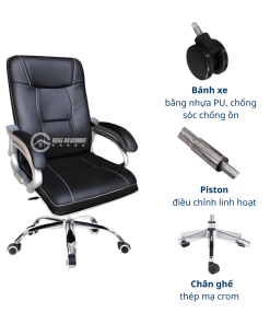 - Tay ghế với khung bạc inox bọc da giúp hoạt động làm việc thoải mái
