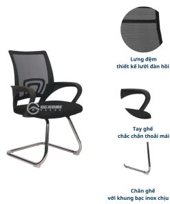 Ghế phòng họp QGH04 lưới có đệm giá rẻ màu đen giúp bạn ngồi làm việc thoải mái. Ghế được làm rất chắc chắn với đệm ngồi êm ái giúp bạn thả lỏng cơ thể khi làm việc. Đặc biệt, khung inox chắc chắn chống han rỉ tốt. Loại ghế này có thiết kế đơn giản nhưng ngồi rất thoải mái. Người ta thường đặt dáng ghế này trong phòng làm việc để giúp thúc đẩy hiệu quả làm việc tốt hơn. Sở hữu những mẫu ghế cho không gian văn phòng đầy đủ tiện nghi và đẹp hơn.