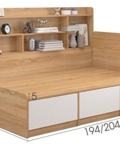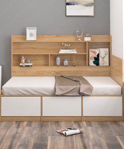 Những ngăn kéo lớn và rộng rãi để bạn có thể cất chăn màn, quần áo,…Phần kệ sách có thể để sách để tiện lấy ra và cất đi, rất phù hợp cho những ai có thói quen thường xuyên đọc sách trước khi khi ngủ.