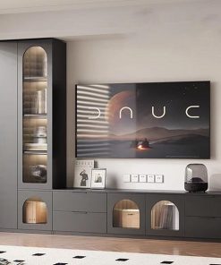 Không gian bên trong của các ngăn tủ và cánh tủ sâu rộng, bạn có thể thoải mái để các loại đồ dùng liên quan như sách báo, tạp chí, đầu thu, remote, bộ loa đài,….. Đặc biệt hơn, với phần tủ có kính thì bạn có thể trưng bày những món đồ lưu niệm, hoa, đèn, chai rượu,… giúp làm tăng thêm vẻ đẹp của chiếc tủ.