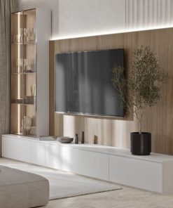 2. Tủ tivi chữ L cánh kính: Dài 1800mm x Rộng 400mm x Cao 2000mm
