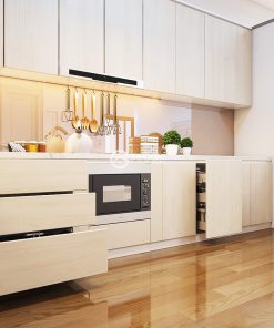 Tủ bếp TB02 được thiết kế tủ bếp trên, dưới và tủ bếp kịch trần với nhiều ngăn, kệ giúp lưu trữ đồ dùng bếp gọn gàng, ngăn nắp. Các ngăn kéo và cánh tủ được lắp đặt linh hoạt, giúp bạn dễ dàng sắp xếp và bảo quản đồ dùng một cách khoa học, mang lại sự thoải mái trong quá trình nấu nướng và sử dụng hằng ngày.