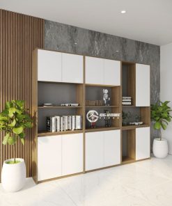 Với các cánh tủ mở kết hợp các hộc để đồ. Thiết kế của tủ tài liệu mang đậm phong cách sang trọng và hiện đại, đồng thời rất tiện dụng. Phía trên của tủ có các đợt trang trí phối hợp để lưu trữ tài liệu, cùng với 1 ngăn treo đồ. Sản phẩm này thường được kết hợp với bàn lãnh đạo cao cấp, tạo thành một bộ nội thất hoàn hảo cho phòng giám đốc hoặc phòng lãnh đạo, tạo ra sự uy nghiêm và chuyên nghiệp cho người lãnh đạo.