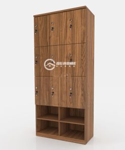 Tủ locker gỗ 9 cánh 3 khoang QTK07-Kệ giày