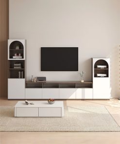 Không gian bên trong của các ngăn tủ và cánh tủ sâu rộng, bạn có thể thoải mái để các loại đồ dùng liên quan như sách báo, tạp chí, đầu thu, remote, bộ loa đài,….. Đặc biệt hơn, với phần tủ có kính thì bạn có thể trưng bày những món đồ lưu niệm, hoa, đèn, chai rượu,… giúp làm tăng thêm vẻ đẹp của chiếc tủ.