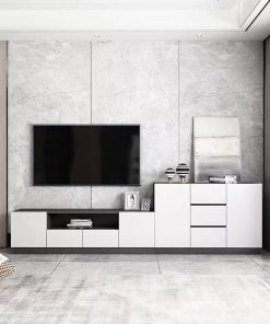 Quy cách: Kệ tivi: 01 hộc tủ mở, 04 tủ cánh mở/Tủ treo: 07 hộc tủ mở, 02 tủ cánh mở/ Tủ đứng cao: 08 hộc tủ mở, 02 ngăn kéo/Tủ đứng thấp: 03 ngăn kéo, 02 tủ cánh mở
