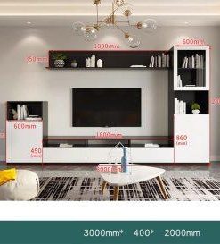Kích thước: Kệ treo: 1800mm x 350mm x 250mm / Tủ thấp: 600mm x 400mm x 1080mm /Tủ cao: 600mm x 400mm x 2000mm - Kệ tivi: 1800mm x 400mm x 450mm